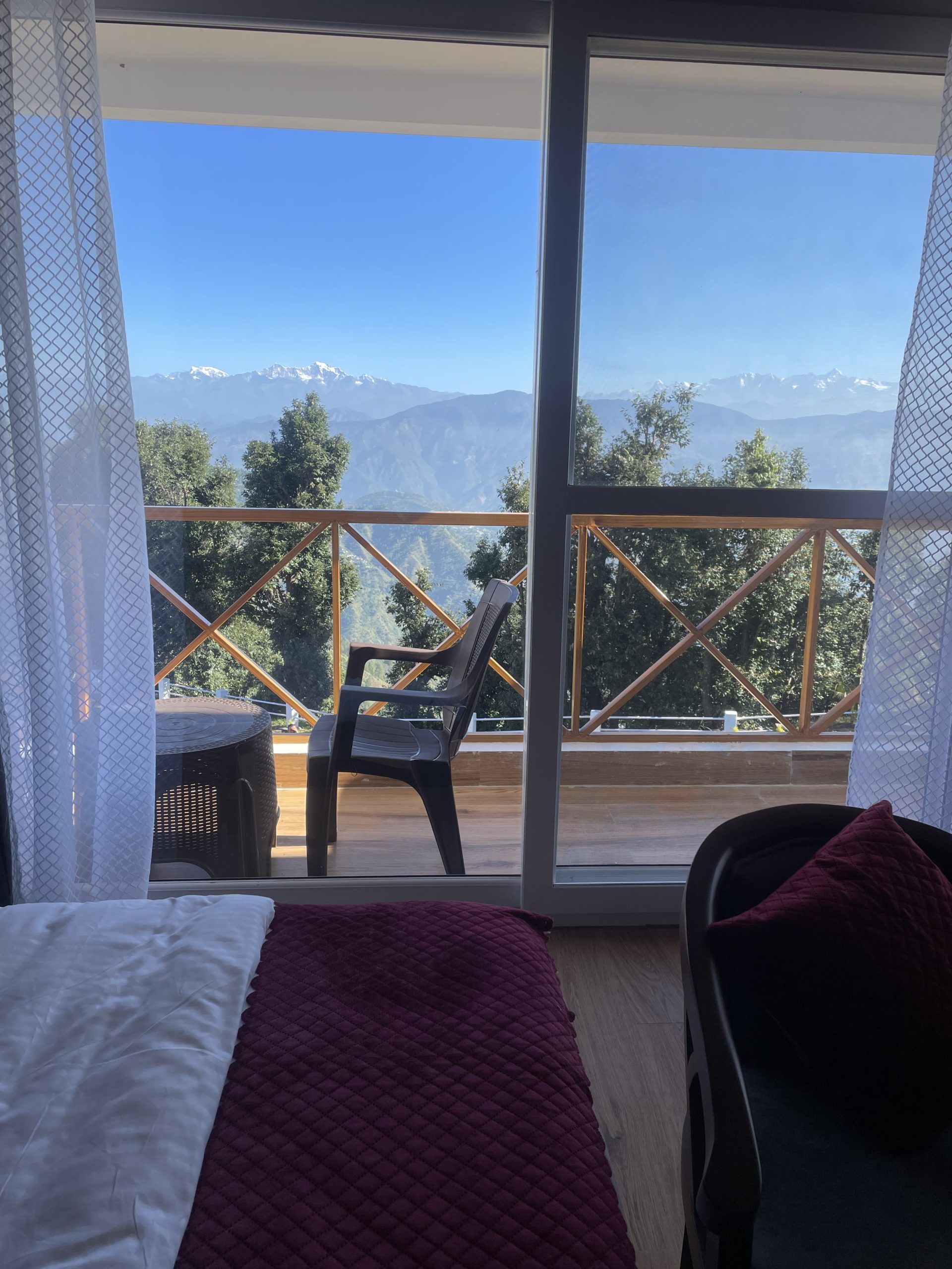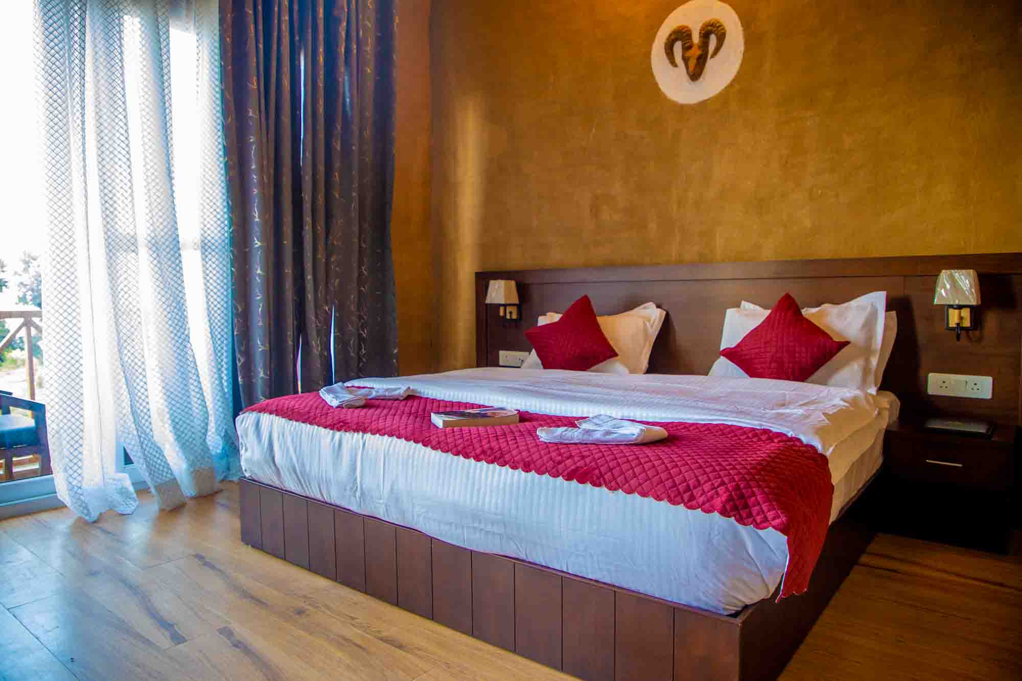 - Spacious rooms with large windows framing stunning Himalayan views